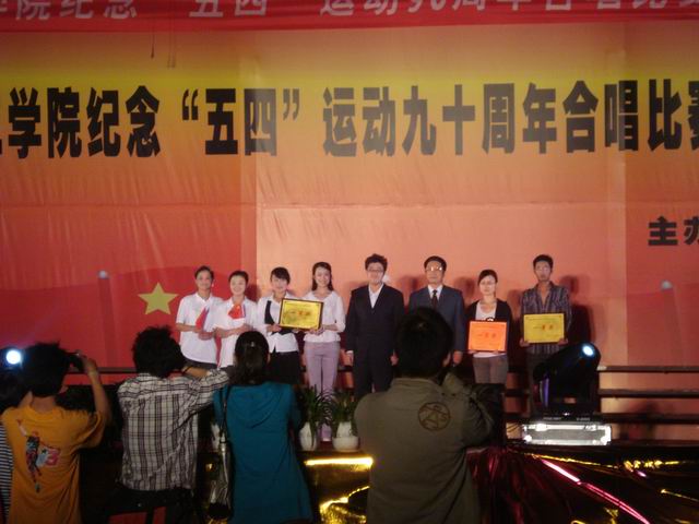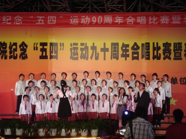 在4月28日公司纪念“五四”运动90周年合唱比赛中,我系获得一等奖。 我系选定的曲目是《龙的传人》,领唱者徐振鹏、米雅,由于合唱队出色的表现,最终我系和纺织学院、人文学院获得一等奖。 外语系团总支 2009年4月29日