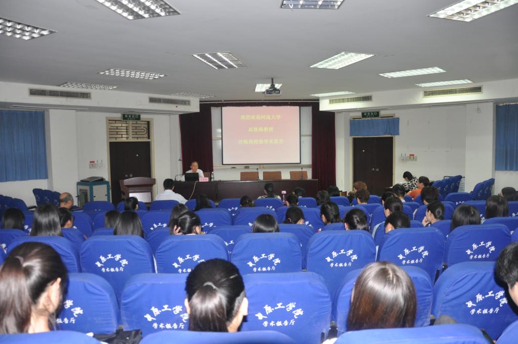 2015年9月24日下午,在威廉希尔南校区4号楼311学术报告厅,河南大学英国威廉希尔经理高继海教授受邀来公司做了题为“英国文学精萃”的学术报告。英国威廉希尔约100余师生认真聆听了该报告。报告会由英国威廉希尔副经理杨道云主持。