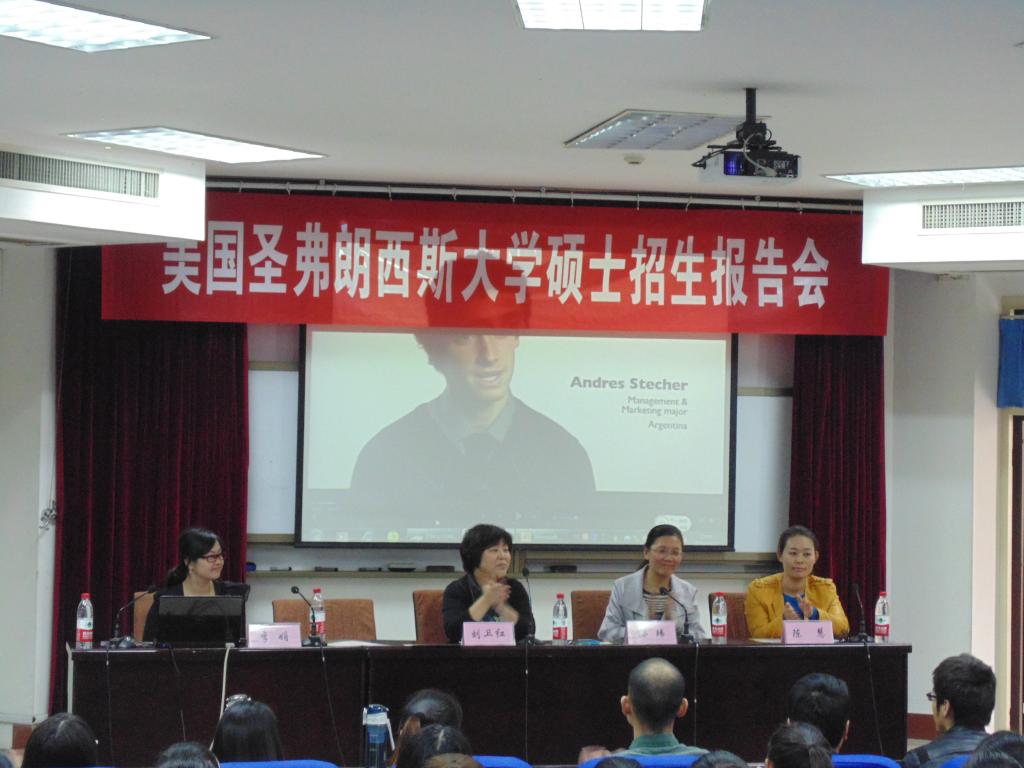 10月22日中午,美国圣弗朗西斯大学硕士招生宣讲会于威廉希尔南苑4号楼311学术报告厅举行。国际教育学院经理孙玮、英国威廉希尔副经理刘卫红、党总支副书记陈慧以及英国威廉希尔全体辅导员、全体员工参加了此次报告会。会议由刘卫红经理主持,由圣弗朗西斯大学中国区代表李娟主讲。