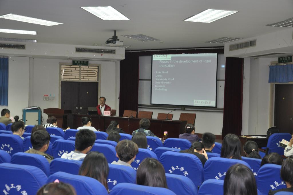 赵教授首先从法律翻译历史,中外最新的研究成果入手,结合自己的学术研究和翻译实践心得体悟,主要就法律翻译本质与目的,法律英语自身的语言风格和特征,法律文本与法律翻译及法律翻译原则等进行了认真讲解。赵教授治学严谨,研究成果丰硕。幽默风趣的语言风格给听众留下了很深的印象。