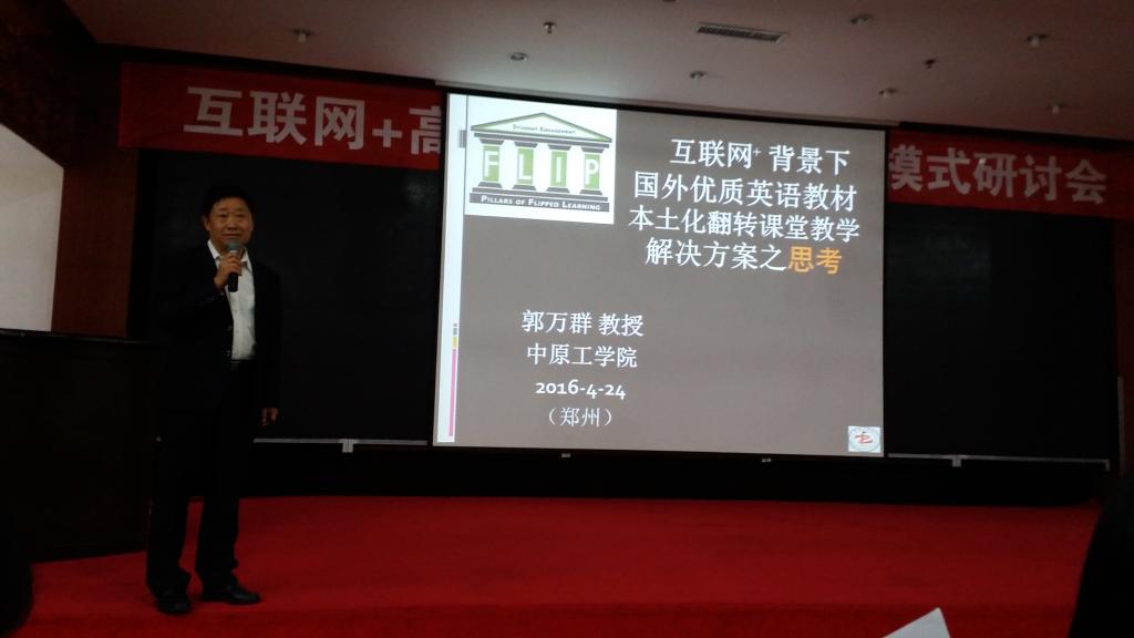 公司郭万群教授应邀做了题为“互联网+背景下国外优质英语教材本土化翻转课堂教学解决方案之思考”的学术报告。该报告基于“互联网+”的背景,主要阐述了国际教材的中国化问题,探索国外优质教材在本土化翻转课堂教学中的解决方案。郭教授的报告引发了与会专家学者的深度思考和一致认同,同时也强化了大家对翻转课堂、混合式学习的理论再认识。