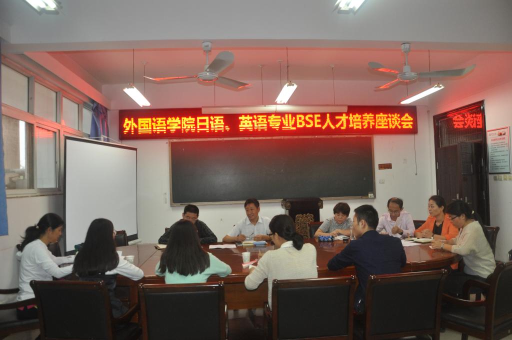 为进一步加强校企合作,拓宽员工就业渠道,9月26日下午公司与河南省863软件孵化器有限公司在11号楼214会议室举行了“英国威廉希尔日语、英语专业BSE人才培养座谈会”。公司经理郭万群、党总支书记李长林、副经理刘卫红、党总支副书记陈慧、英语系主任闫秋霞、日语系主任边冬梅、汉语国际系主任陈大为及863软件孵化器公司经理朱喜娟一行四人出席了座谈会。