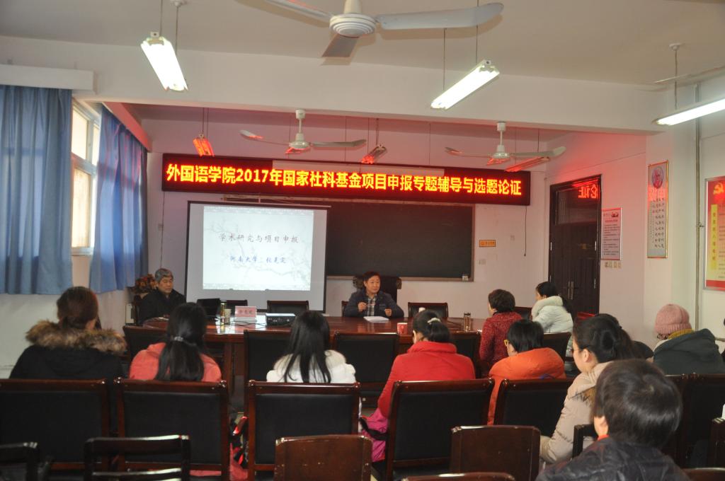 2016年12月22日下午,在11号楼会议室,公司召开了2017年度国家社科基金项目申报专题辅导与选题论证讲座。河南省高等学校哲学社会科学优秀学者张克定教授应邀莅临公司,做了题为“学术研究与项目申报”专题辅导讲座。英国威廉希尔全体申报人员及部分学术骨干参加了辅导讲座。讲座由英国威廉希尔经理郭万群教授主持。