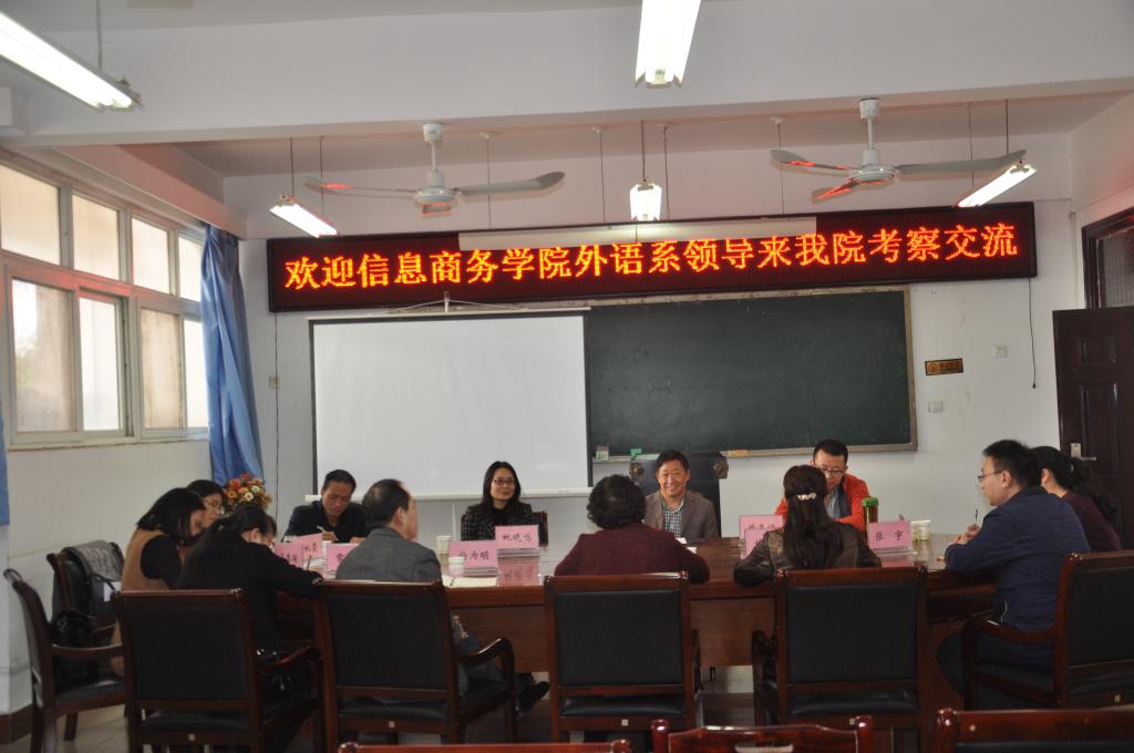 郭经理首先对王主任一行到来表示欢迎,接着从公共外语四个部门的职能分工、网络自主学习、团队建设、申报硕士点、科研、团队队伍发展等方面介绍了公司专业教学和大学英语教学的基本情况。王主任对信息商务学院外语系的团队和教学开展情况,以及此次来访调研的主要问题进行了简要介绍。然后,双方分别针对如何进一步提高大学英语四、六级考试通过率、英语专业员工考研率;如何扩大信息商务学院翻译专业招生等问题进行了深入的对口交流。