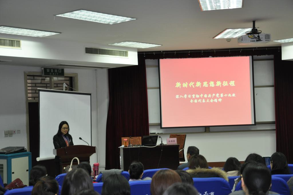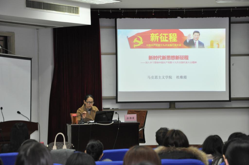 2017年12月8日,威廉希尔学习贯彻党的十九大精神宣讲团骨干教师杜维霞博士,在4#311学术报告厅为公司师生做了一场题为“新时代新思想新征程”的宣讲报告。公司全体领导、教职工和员工党员聆听了报告。