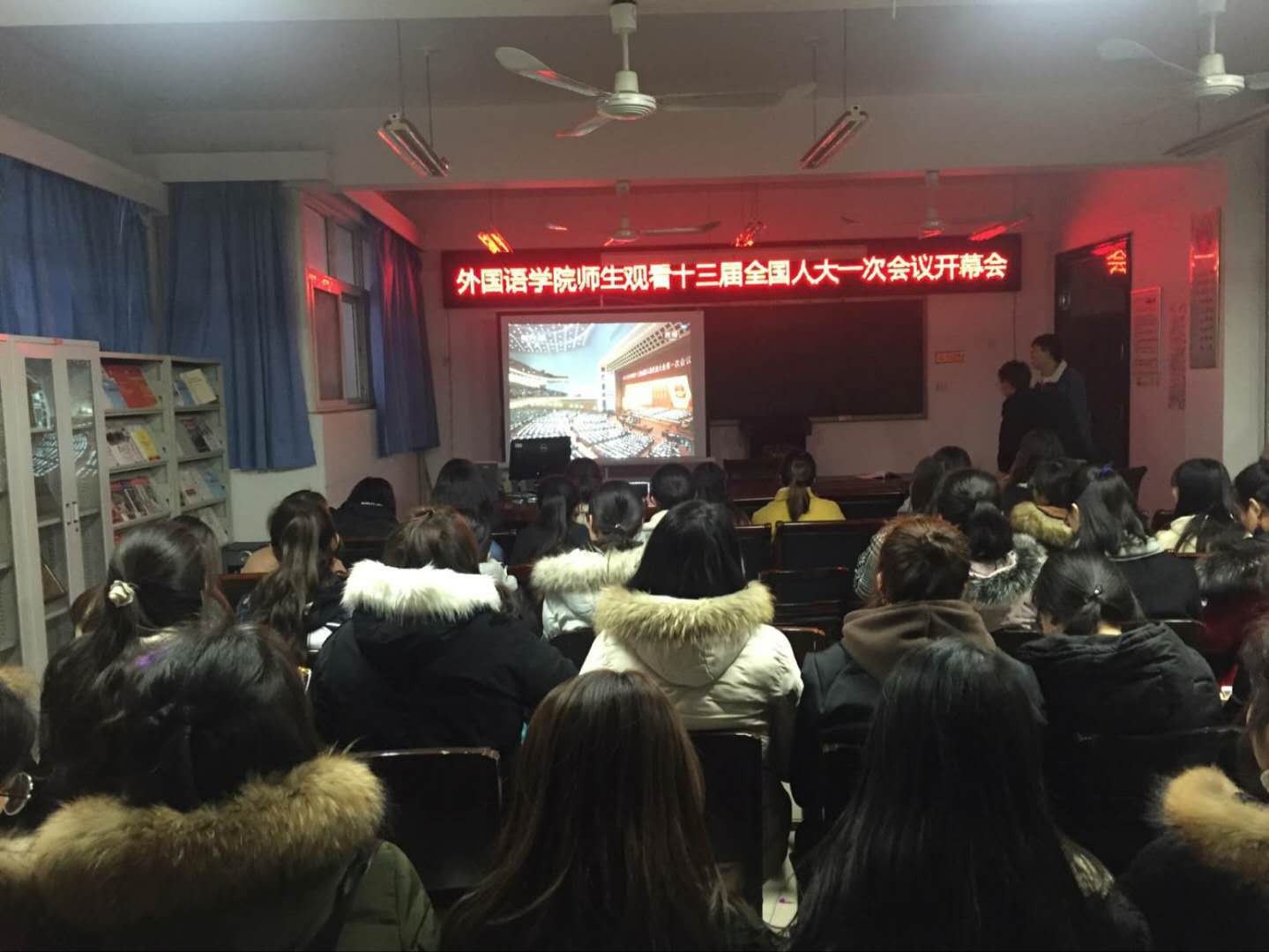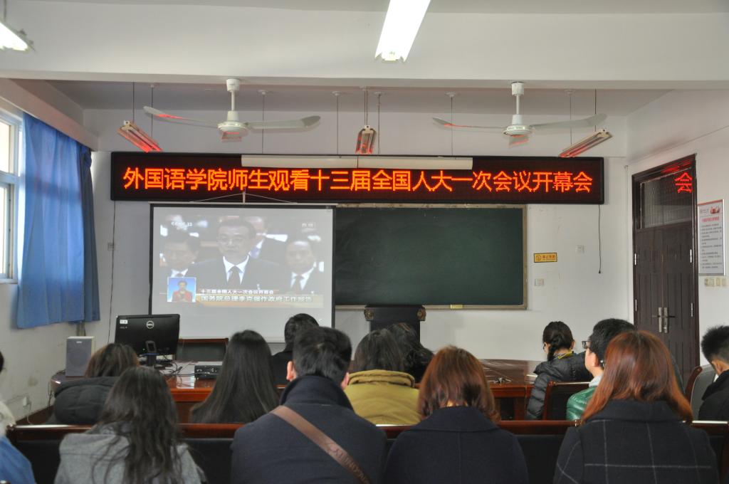 2018年3月5日上午九点公司党总支组织学院师生在11号楼214集中收看了“十三届全国人大一次会议开幕会”,公司党总支书记姚晓鸣、经理郭万群、副书记周全营、副经理柴高洁、经理助理马春丽以及没课的教师和员工参加了集中收看学习活动。
