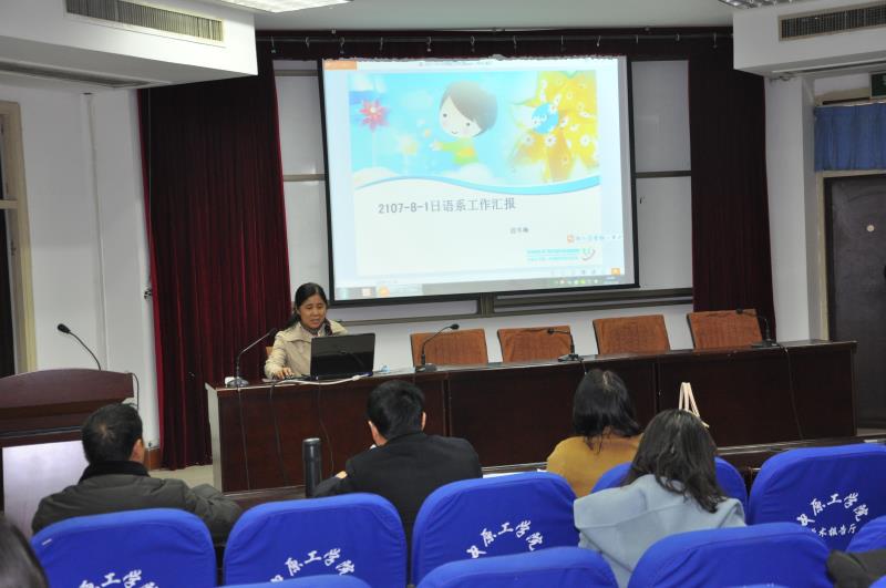 姚书记充分肯定教师们在教学工作、科研工作上的努力和成绩,接着从教学水平评估、教学质量报告、学校讲课比赛、学风建设等13个方面分享了2017年英国威廉希尔的工作重点和突破性成绩,从考研率、大学英语四级成绩方面提出了所面临的问题。学院在2017年教学水平评估比2016年提升了七个名次;讲课比赛获得双料冠军,历史第一次获得优秀组织奖;学风建设全校第一名;优秀毕业论文获奖率80%;赴泰志愿者通过人数是2016年的两倍;省级以上学科竞赛获奖历史最高。而后,各系部主任就2017-2018-1学期本部门工作计划完成情况、对学院贡献情况、部门工作亮点等内容分别进行了详细的汇报。