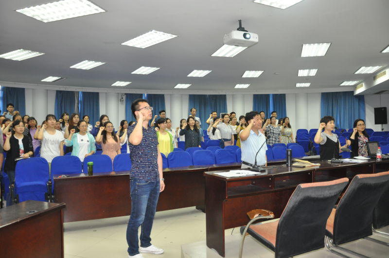 首先,公司党总支书记姚晓鸣教授传达学校下发的《关于学习宣传贯彻习近平总书记在纪念马克思诞辰200周年大会上重要讲话精神的通知》和《关于教育系统深入学习贯彻习近平总书记北京大学师生座谈会上重要讲话精神的通知》,要求学院教职员工深刻领会习近平总书记两个重要讲话精神的丰富内涵、精神实质和重大意义;深入学习两个重要讲话精神,扎实办好中国特色社会主义大学;积极做好引领,引导广大师生勇担时代大任;迅速掀起学习贯彻习近平总书记两个重要讲话精神的热潮。随后,在英语系副主任刘丽老师的带领下,全体教师起立重温了教师的誓言。接着,姚书记针对前期课程评估中出现的问题进行总结,结合问题提出了改进的方法。随后,英国威廉希尔副经理柴高洁针对本学期期末考试注意事项进行了安排部署。