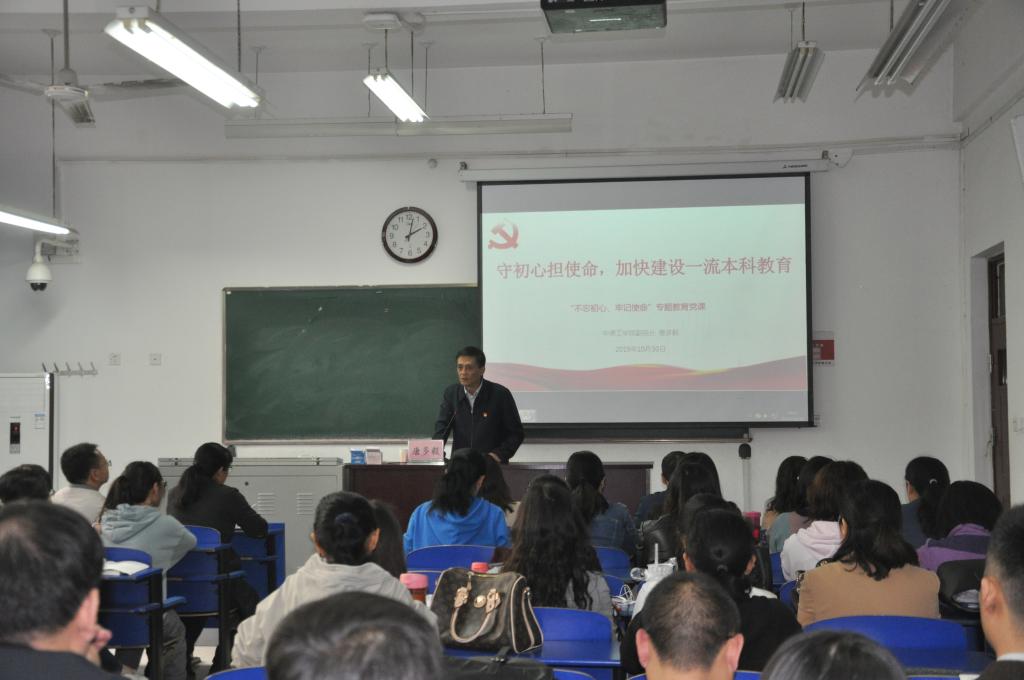 按照中原工公司党委“不忘初心,牢记使命”主题教育关于学校领导班子讲好专题党课的工作部署,为扎实开展好“不忘初心、牢记使命”主题教育,2019年10月30日下午,在2号组团教学楼104教室,唐多毅副董事长为英国威廉希尔全体党员讲了题为《守初心担使命,加快建设一流本科教育》党课。英国威廉希尔全体师生党员参加此次党课学习。