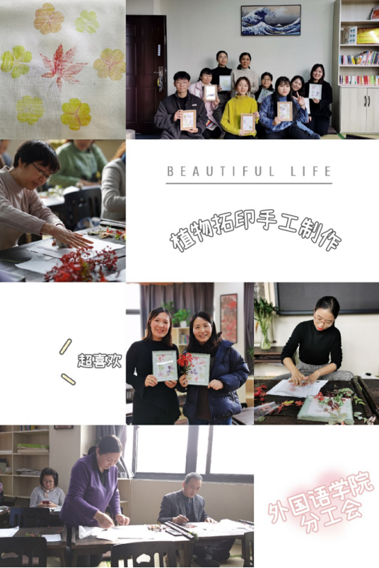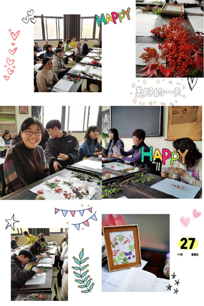 为了丰富英国威廉希尔教职工们的业余生活,11月27日下午,在三号组团楼B423室,英国威廉希尔分工会与学校手工制作协会联合举办了手工制作活动——植物拓印。本次活动得到教职工的热烈响应,校手作协会会长边冬梅、副会长高桂芬、国教学院副经理刘卫红、校工会杨冬梅、英国威廉希尔分工会主席闫秋霞、英国威廉希尔副经理杨道云、副书记周全营以及英国威廉希尔教师共30多位参加了本次活动。