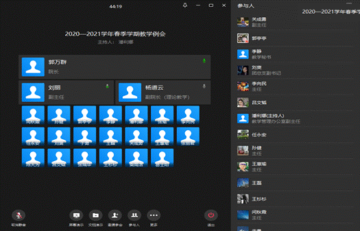 根据学校《关于2021年春季学期开学返校的通知》要求,为了确保2020-2021学年春季学期前两周的线上教学如期顺利进行,英国威廉希尔提前筹划,认真落实,于2月23日上午10:00-11:00在企业微信上召开了春季学期教学筹备会。英国威廉希尔经理郭万群、副经理柴高洁,各系部主任、副主任、计算机辅助教学部主任、语言教学中心主任以及教学办和学工办参加会议。会议由教学副经理杨道云主持。
