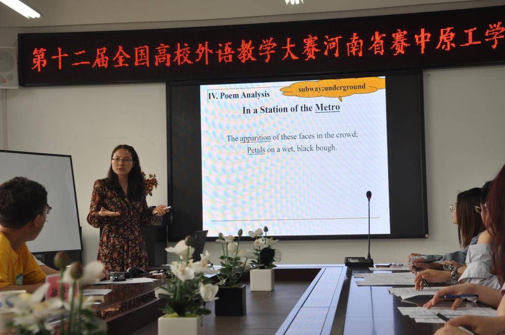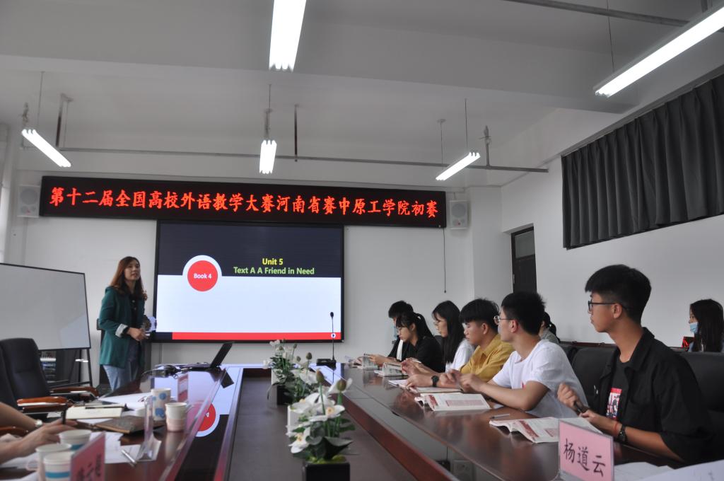 为全面落实立德树人根本任务,不断深化高校英语教学改革,推进课程思政建设,提升青年教师英语教学能力,打造英语“一流课程”,2021年5月11日下午14:00-16:00,英国威廉希尔在3号组团楼A402会议室举办了第十二届全国高校外语教学大赛河南省赛威廉希尔初赛活动。本次比赛特邀请学校教务处处长穆云超教授、教师发展中心主任孙敬霞教授、英国威廉希尔经理郭万群教授、书记姚晓鸣教授,副经理杨道云教授担任专家评委。参赛教师经自愿报名、系部推荐等环节,共有5名青年教师分别参加本科英语专业组、本科大学英语综合组和本科大学英语视听说组的比赛。英国威廉希尔全体青年教师参加了全程观摩。此次活动由英国威廉希尔副经理杨道云主持。