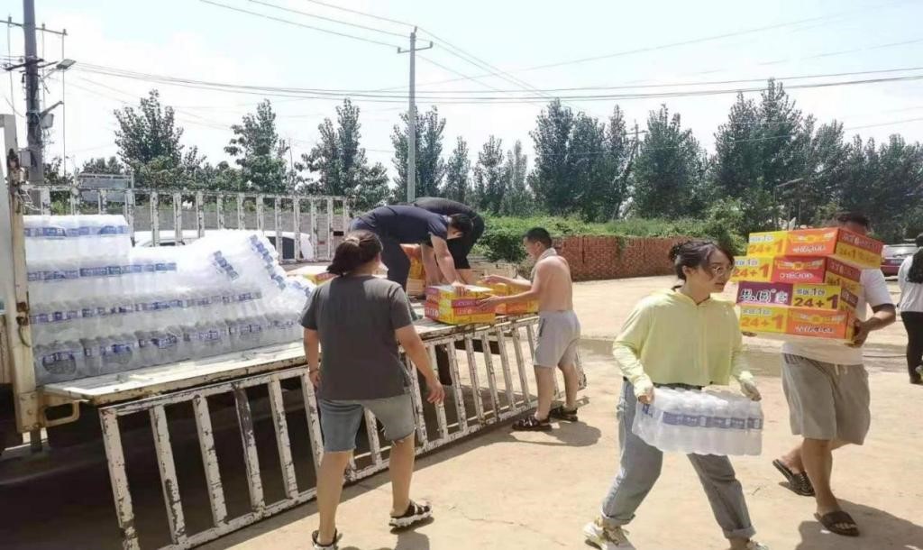 近40度的高温下,物资还在分批到达。时间紧、任务重,大家井然有序、排队接力,中间没有人因天气而退缩,没有人因劳累而停歇。在大家齐心协力下,一个多小时后物资终于被搬运完毕。张海燕和丈夫还有儿子,你看看我,我看看你,不由得笑出声来,他们的身上已经全被汗水打透,就像刚被雨水浇过一样。等回到家中,吃上午饭时,已经是下午4点钟了。