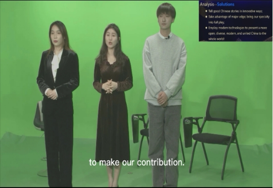 自6月被宣布进入河南省决赛名单以来,学院高度重视此次比赛。贺红艳带领团队从头脑风暴跨文化交际现象、锁定跨文化交际点、深入广泛搜索相关素材、撰写访谈剧本、频繁推敲打磨剧本台词,到熟练背诵台词、反复线下彩排,每一个细节都做到精益求精、以赛促教,有效地把课内外“教”与“学”高度融合,提高员工创新意识、创新思维、创新技能,也促进了教师和员工专业素养双提高。