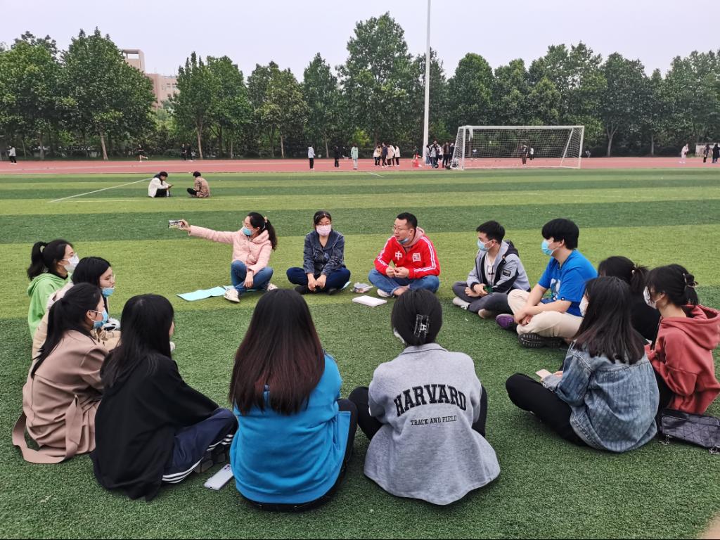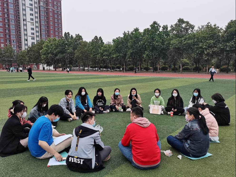 活动开始后,师生围坐操场,柴高洁首先朗诵了海子的诗歌《姐姐》,介绍了这首诗创作的前后源起,并结合海子的生平经历介绍了海子诗歌的特点。随后学院分工会主席闫秋霞、学院办公室主任郝菁合作朗诵了英文版的《再别康桥》,操场上掌声不断。两首诗歌勾起了员工对诗歌的兴趣与期待,纷纷主动朗诵和分享诗歌。汉语211班武爽和杨涵冰共同朗诵诗歌《致橡树》,汉语201班郭雨蝶分享歌词朴树的《生如夏花》,汉语201班李东榜分享了自己的原创诗歌,并谈其创作背景、内心感受。此后师生踊跃参与,依次朗诵了原创诗歌以及自己喜欢的诗歌作品。