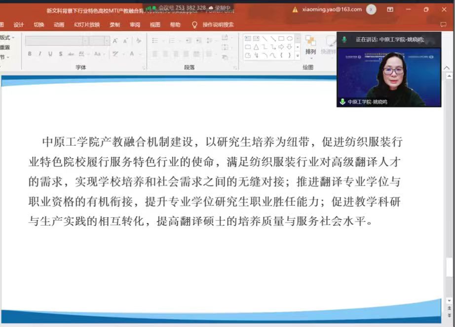 在下午的分论坛讨论环节,英国威廉希尔经理姚晓鸣教授做了题为“新文科背景下行业特色高校MTI产教融合育人机制研究与实践”的主旨发言,分享了威廉希尔MTI及外语类本科专业在产教融合育人机制建设上的经验。姚晓鸣教授指出,威廉希尔MTI和英语、日语本科专业人才培养立足于本校特色,以满足电子信息、纺织服装行业对高级翻译人才的需求为使命,构建“课堂教学-特色项目-实践基地-双导师指导”四位一体的专业实践体系,实现学校培养和社会需求之间、翻译专业学位与职业资格之间、教学科研与生产实践之间的无缝对接。
