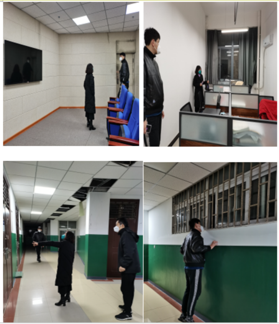 为做好本次消防安全隐患排查整治工作,学院经理、书记亲自部署抓落实,11月24日晚,工作布置会以线上线下结合的形式召开,全体班子成员、驻校志愿者、两办人员参加,党委书记柳素平主持,会议传达学校关于排查整治的文件精神,对排查整治工作进行周密安排。11月29日,学院驻校志愿者在疫情防控繁忙的工作之余,抽出时间,柳素平带队组成葛士阳、周威、吕文韬参加的4人检查组,对3号组团4楼A、B区的办公区域、仓库和4号楼语言教学中心实验室进行一次拉网式、地毯式排查,重点检查了是否违规使用大功率电器、可燃物存放、电气线路隐患等。